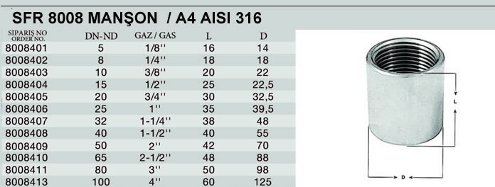 SFR 8008 Manşon